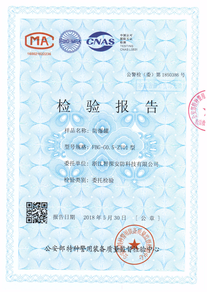 防爆罐公安部檢驗報告