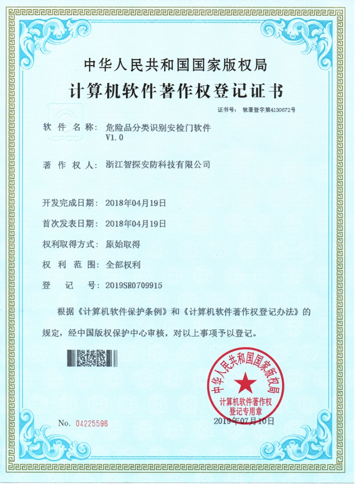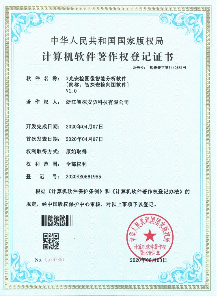 違禁品智能識別安檢儀專利證書