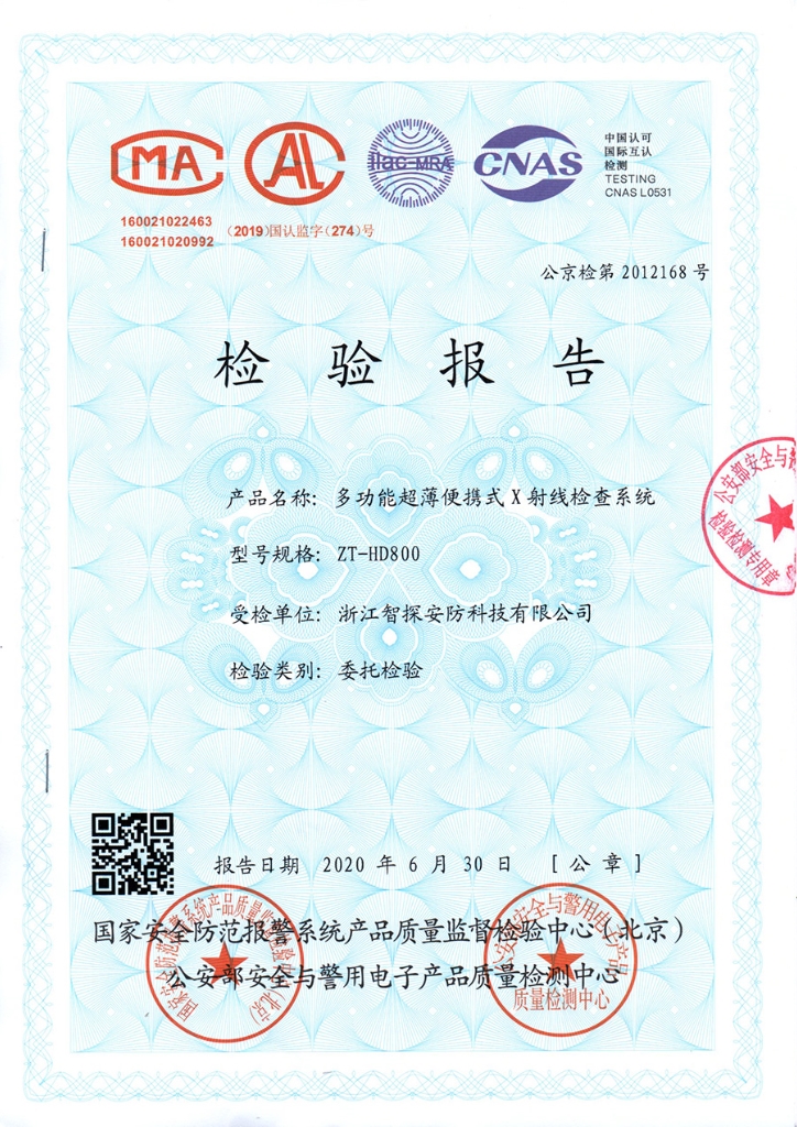 便攜式X光機公安部檢驗報告