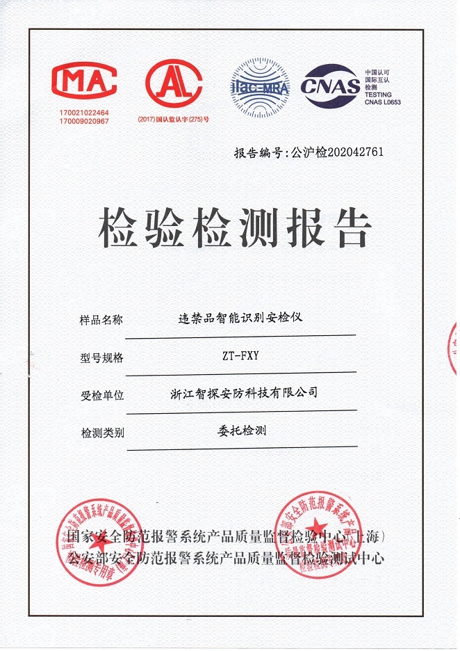 智能識別安檢儀公安部檢驗報告