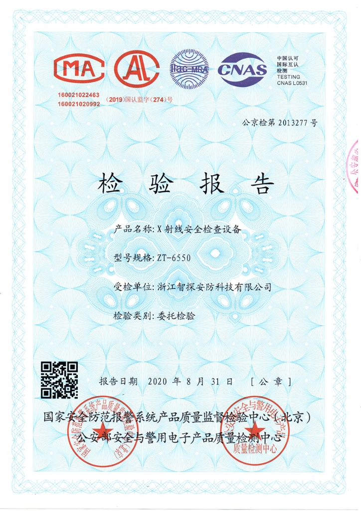 安檢機公安部檢驗報告